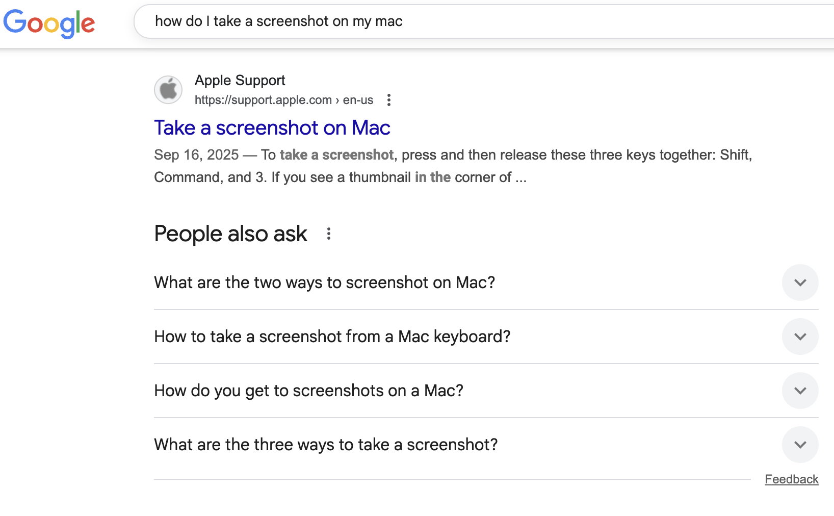 In a new tab on your browser, type the following in the search bar: "How do I take a screenshot with a _________?" Fill in the blank with the exact name of your device (e.g., Chromebook, Windows PC, Macintosh, iPad).