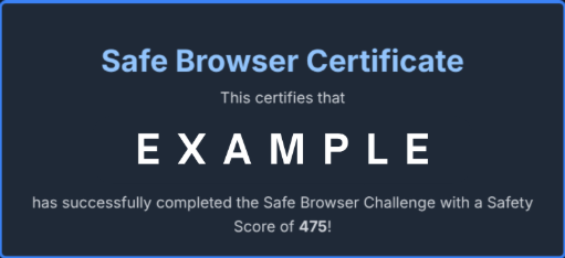 Step 2. After completing all six missions you receive your Safe Browsing Certificate. Copy or download the image.